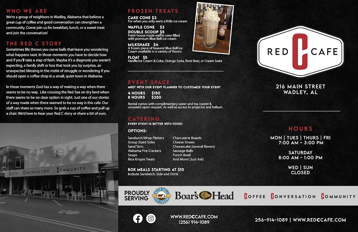 Overall, Red C Cafe is much more than just a stop for a caffeine fix; it’s a vibrant community hub where delicious food meets genuine hospitality. So, if you find yourself in Wadley, don't miss the chance to discover this hidden gem. Indulge your senses, relive comforting memories, or create new ones over a cup of their expertly crafted coffee and delightful frozen treats.